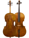 ? Ebony pegs and tailpiece with a single Wittner fine tuner, Aubert 14 bridge, and 21.5" Carbon Fiber Rod Endpin with a Composite Plug
